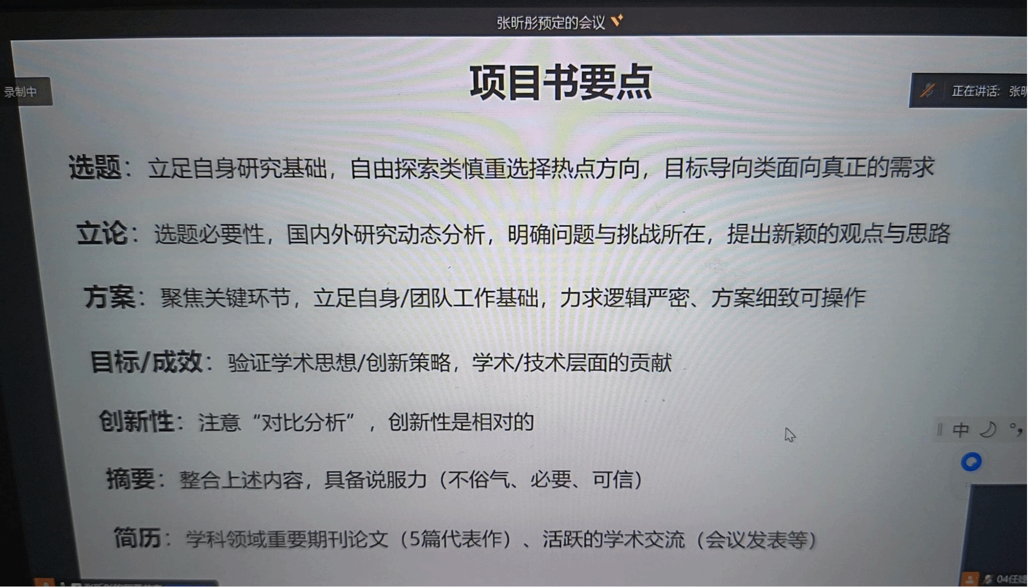 张昕彤教授(博士生导师,教育部新世纪优秀人才、吉林省学科领军教授等)结合自身科研与项目申报经验,从项目书要点(选题、立论、方案等核心模块)、青年/面上项目评分标准(创新型、科学问题价值等评审维度)、项目书撰写框架(9大核心板块逻辑)等方面展开讲解,既解析了申报中的共性问题,也分享了突出创新性、匹配评审要求的实操技巧。