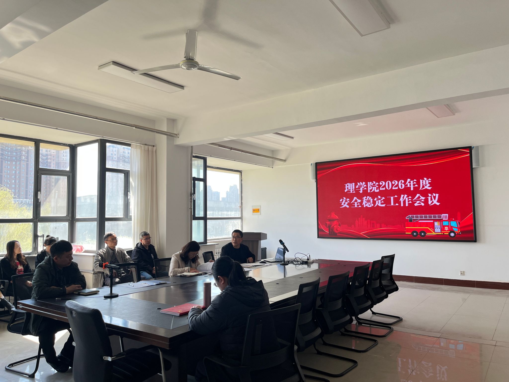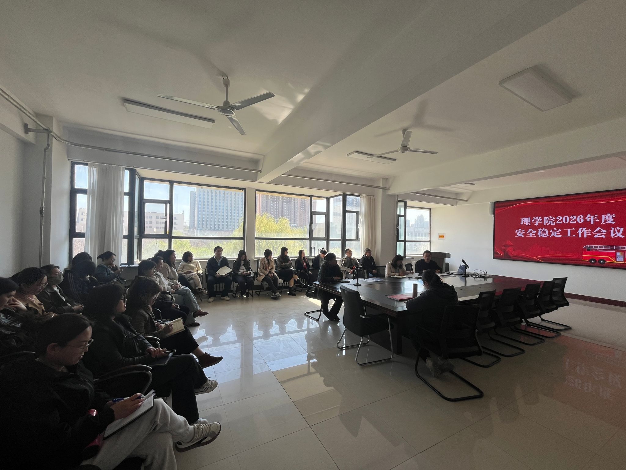 4月22日,理学院组织召开了本年度安全稳定工作会议,本次会议共有三项议程:一是落实“第一议题”制度,党总支书记领学《习近平关于总体国家安全观论述摘编》相关内容;二是院长传达了校长《在学校2026年安全稳定工作会议上的讲话》主要精神;三是党总支书记对理学院2026年度安全稳定工作重点任务作出部署,要求全体员工要明确每人都是安全稳定工作的责任主体,要在各自岗位上履职尽责,“保安全、促发展”,共同推动理学院各项事业高质量发展。