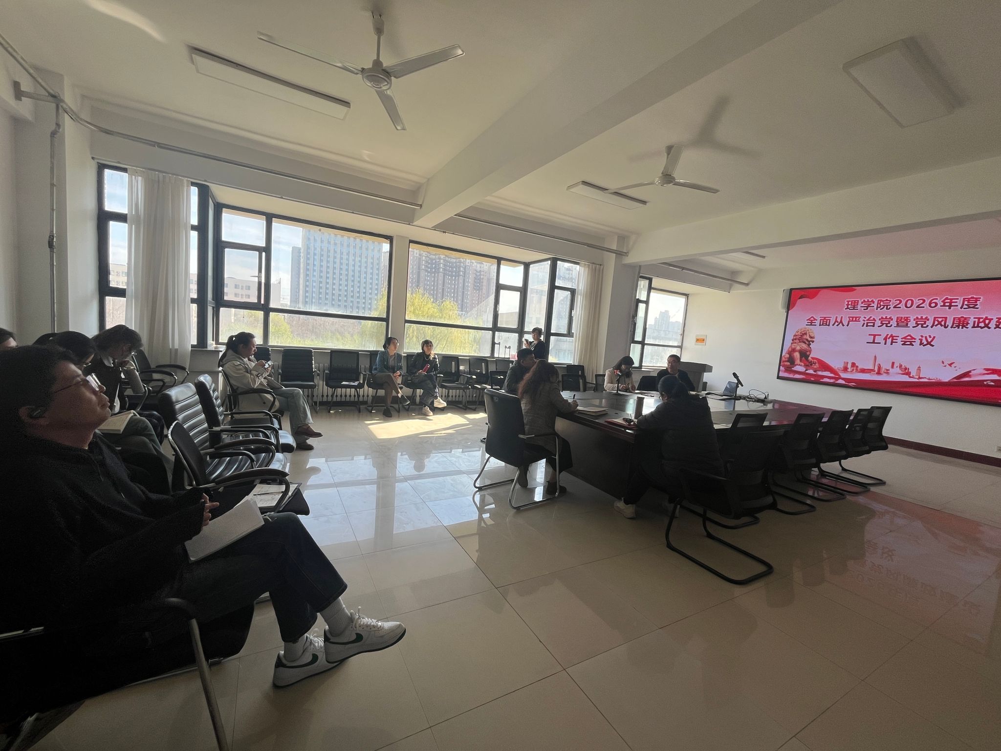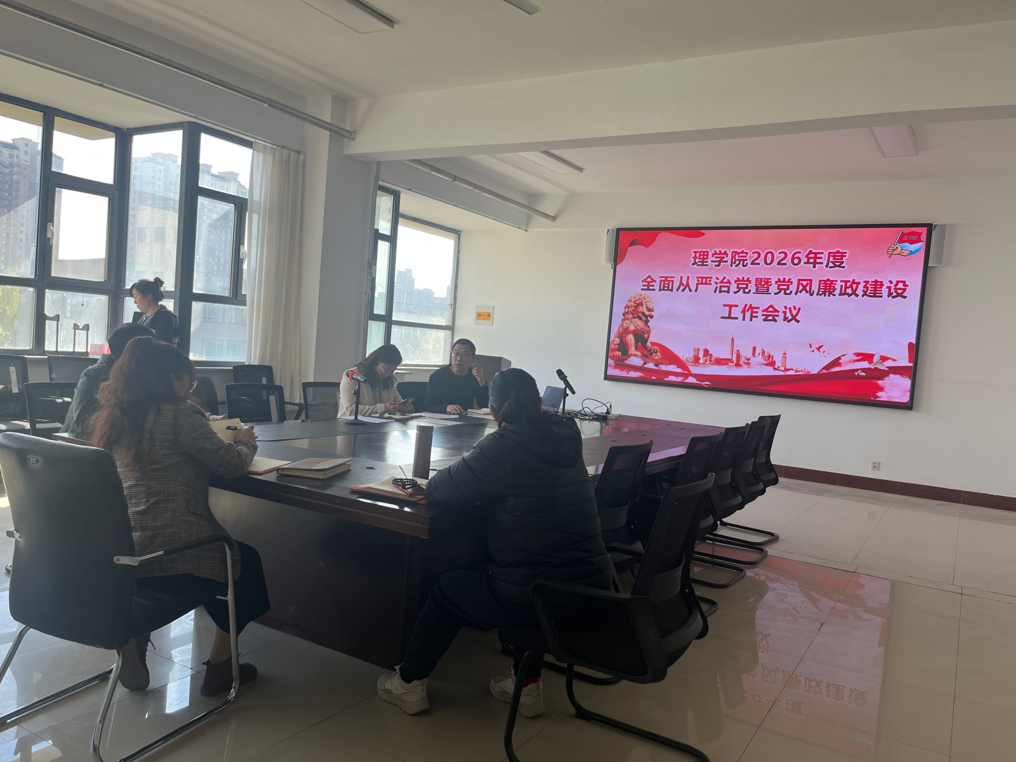 4月22日,理学院组织全体党员同志召开了2026年度全面从严治党暨党风廉政建设工作会议,本次会议首先分别由院长、党总支书记传达了校纪委书记、校党委书记在学校2026年全面从严治党暨党风廉政建设工作会议上的重要讲话精神;最后由党总支书记对部门全面从严治党重点工作进行了部署,要求全体党员同志一定要共同扛起全面从严治党的政治责任,始终保持严的基调、严的氛围,相互提醒、相互监督,努力营造风清气正的生态环境,推动部门各项事业高质量发展。