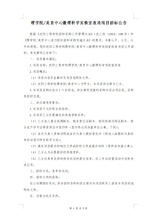 理学院/美育中心数理科学实验室改造项目招标公告