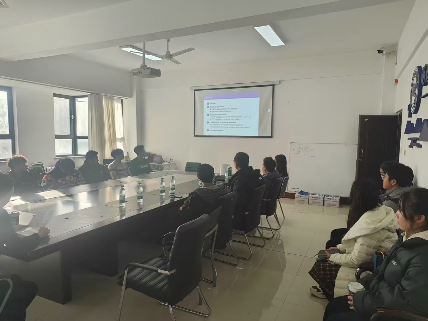 2025年12月5日13:40,理学院在312会议室组织召开了学术前沿系列讲座,本次会议邀请到了山东科技大学菁英计划特聘教授、博士生导师、算子理论及其应用学科带头人、美国(Math Reviews》和德国《Zentralblatt Math》评论员、数学与系统科学学院刘风教授,他为我校数学领域的科研人员和师生带来了题为《极大算子与极大交换子的端点Sobolev正则性》的学术报告,会议由理学院数学与应用数学研究室主任刘晓静博士主持,理学院部分师生代表参加了本次会议。