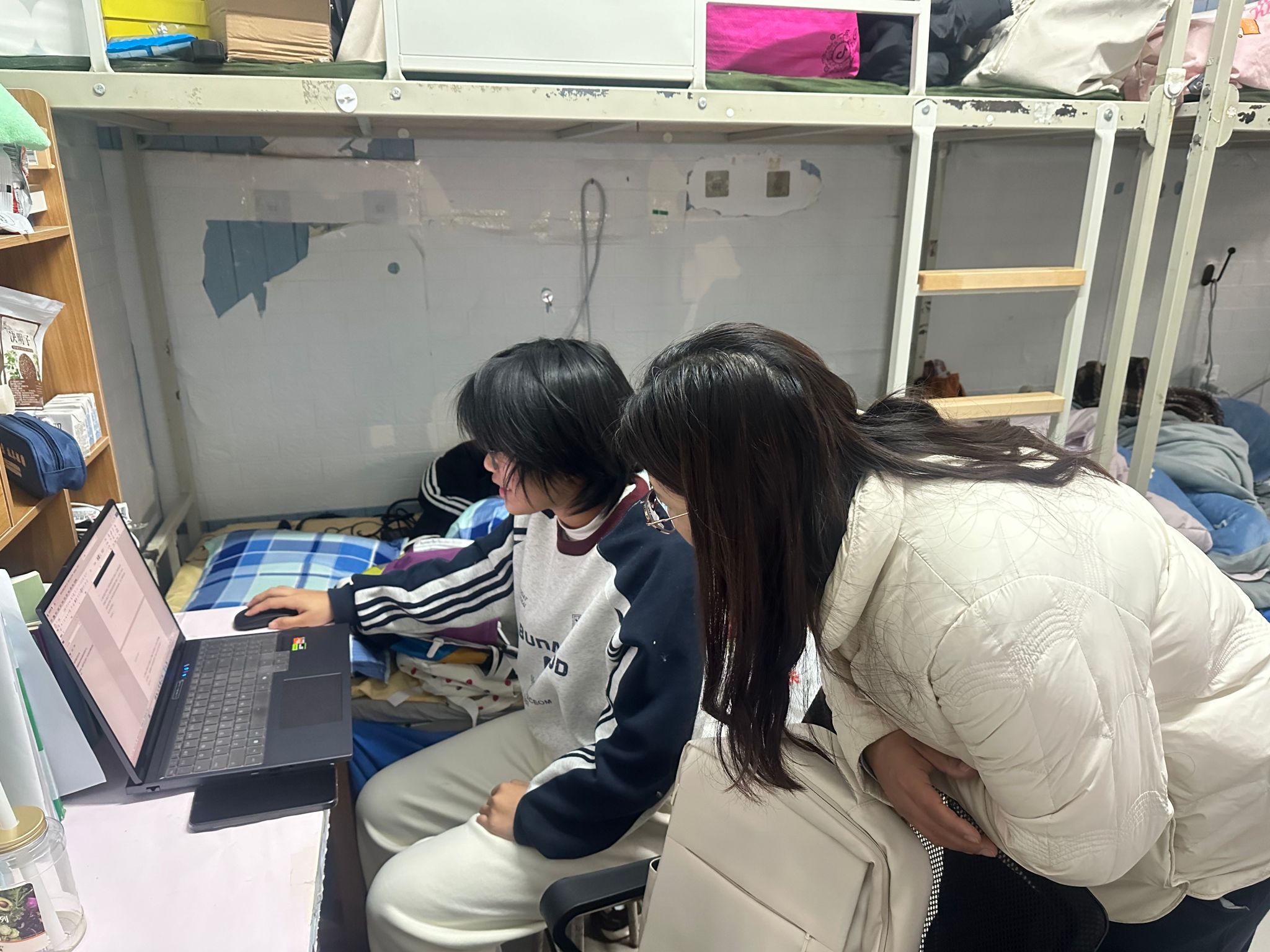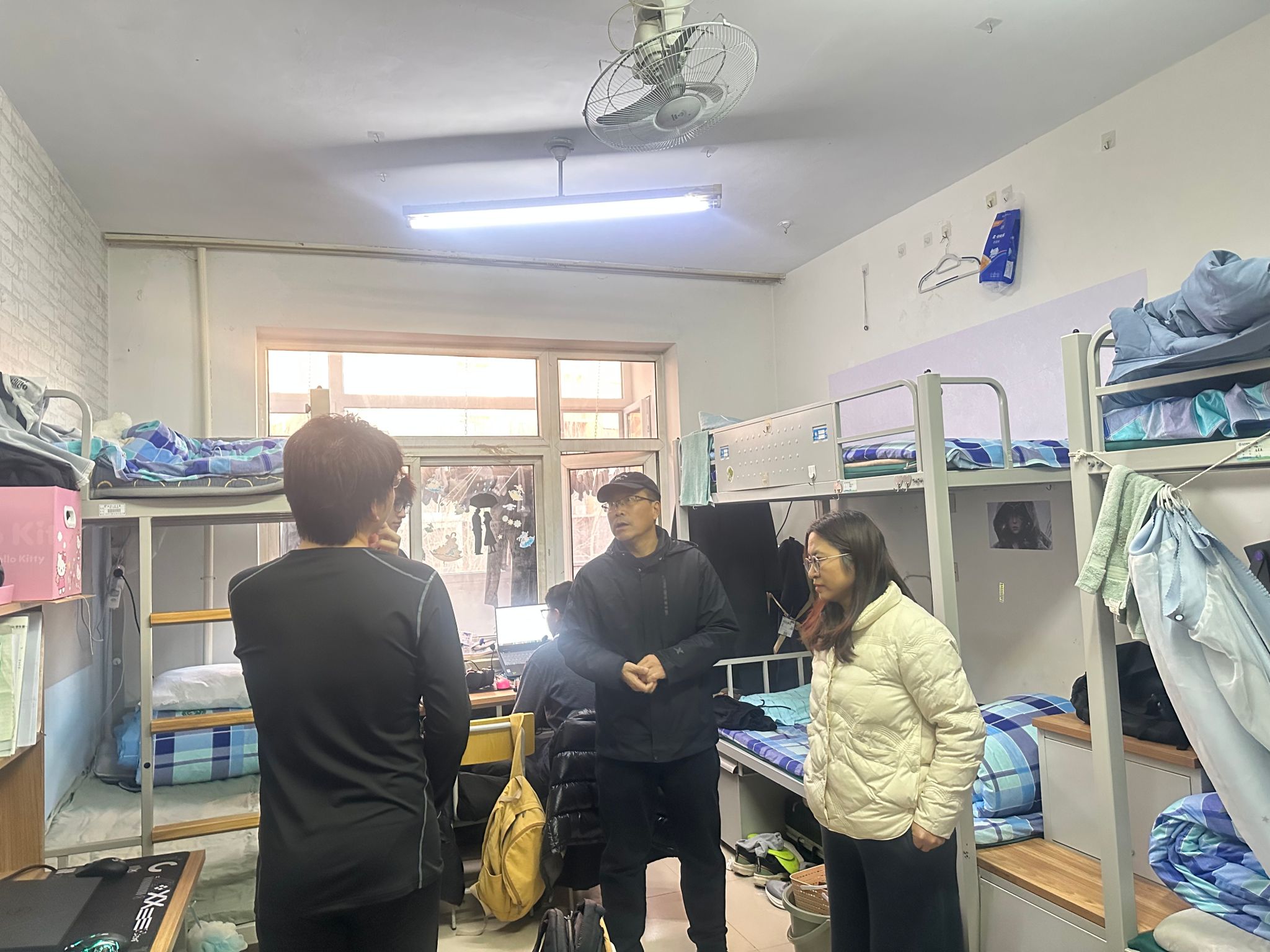 在学业方面,史院长聚焦学业成长,殷切关怀、指点学业迷津。她亲切询问了同学们《高等数学》等课程的学习情况,并就学习方法给予现场指导。她特别关注学院组织的学业辅导、“数理学业导师”帮扶及数学章节测试等工作的开展情况,询问同学们是否参加了“数学辅导”活动,效果如何,鼓励大家充分利用学院提供的学业资源,夯实数理基础,提升学习成效。针对毕业生寝室,院领导开展了专门的走访与就业指导,逐一询问在寝的毕业生们的就业进展、求职意向和面临的困难,深入了解每位学生的就业状态,鼓励学生们广泛投递简历,勇于参加各类面试,在实践中提升综合能力。此外,董书记还特别关心同学们的冬季住宿条件,生活上是否存在困难。书记每到一间宿舍,都会伸手摸摸暖气片,感受室内温度,并关切地询问:“同学们,晚上睡觉冷不冷?宿舍的供暖有没有问题?”一句句贴心的话语,让同学们倍感温暖。领导们与同学们热情交流,并对大家提出的问题予以积极回应。