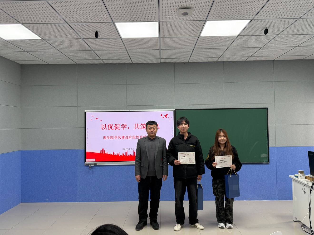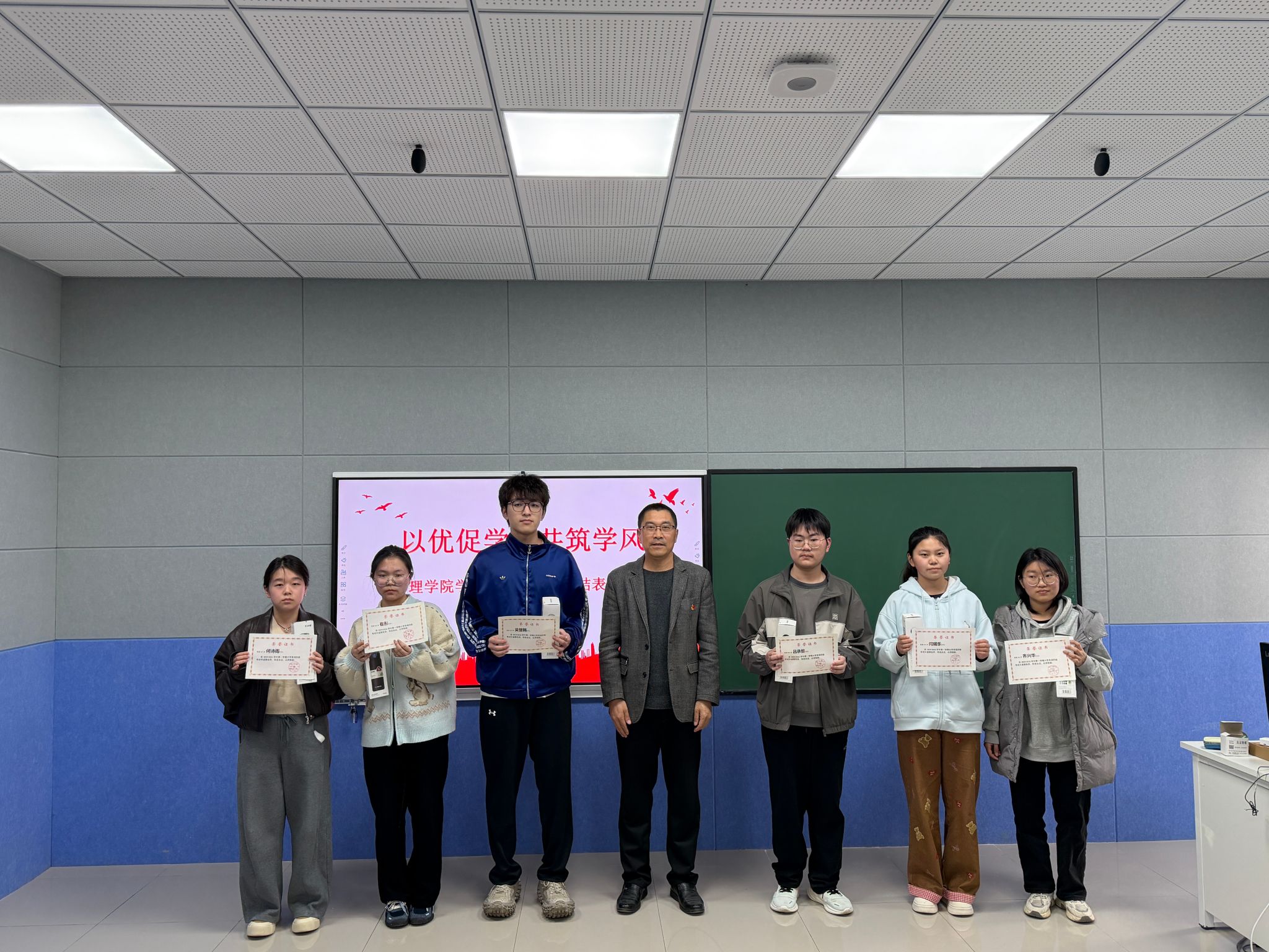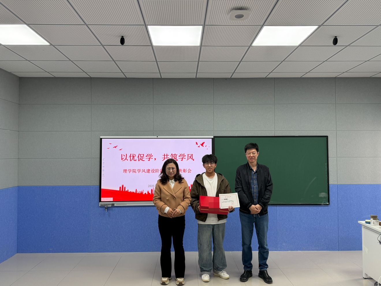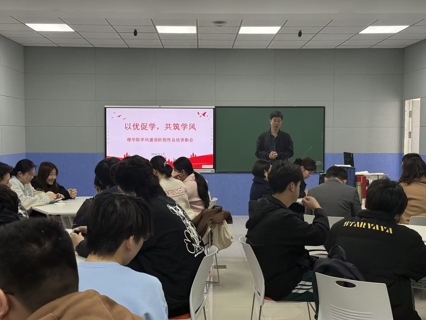 3月26日中午,理学院于B305召开学风建设阶段性总结表彰大会。学院领导班子、高等数学任课教师及全体辅导员参加会议,对大一学生第一学期学业成果进行总结表彰。