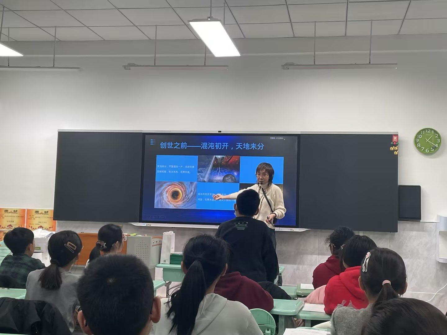 商晶老师的课程以中国创世神话为主线,通过生动的讲述与形象的解读,系统梳理了神话的叙事脉络及其背后深厚的文化寓意。她围绕“开天辟地、化身万物”的经典传说,重点阐释了其中所蕴含的勇于开创、担当奉献、舍己为人的精神内核,并引导学生联系实际,理解这些精神在中华民族历史长河中的延续与体现。